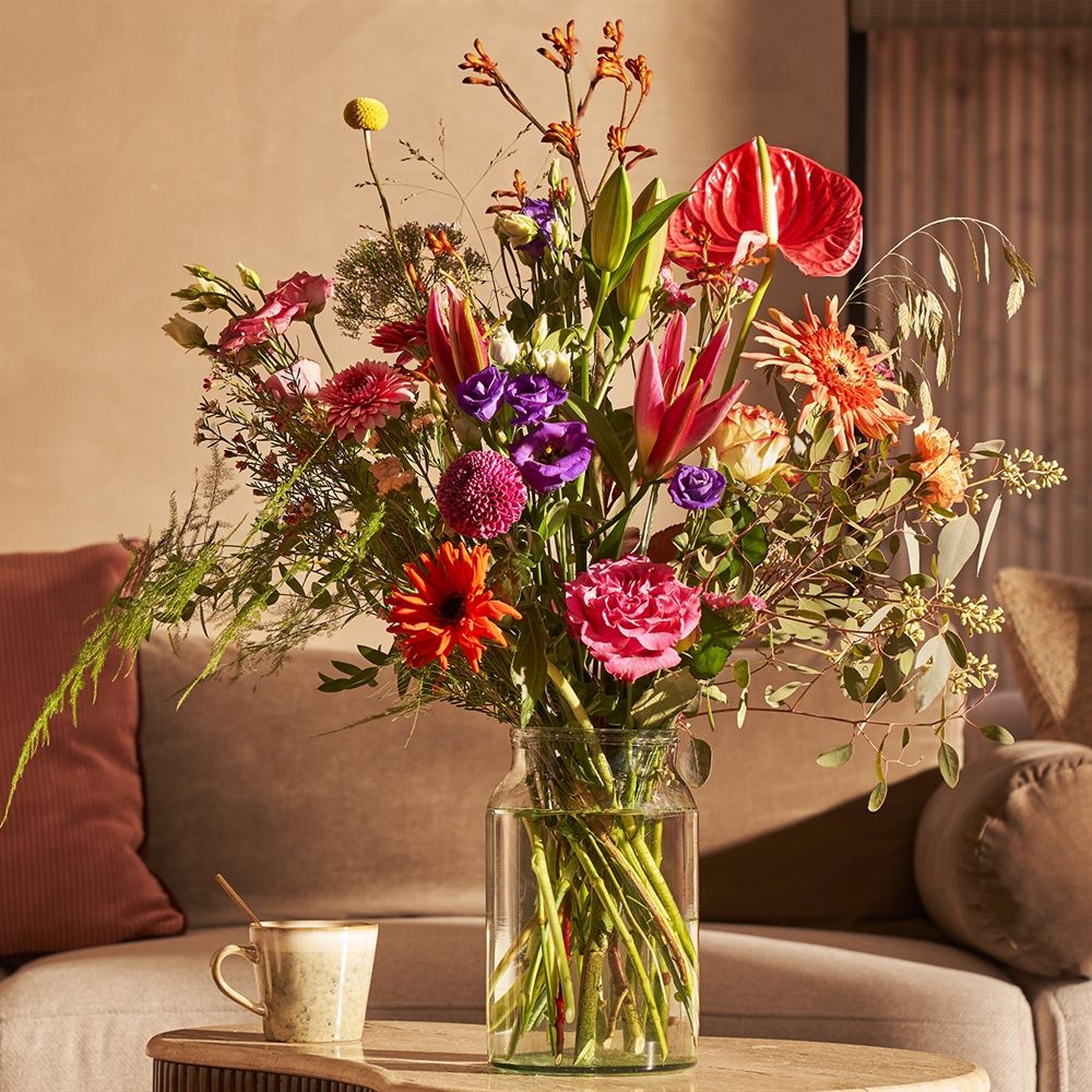 Royaal, kleurrijk boeket om mee te pronken - met de mooiste bloemen van het seizoen, zorgvuldig samengesteld door de bloemist. Het boeket Allure is een echte blikvanger met prachtige anthurium, lelie en roos. Dit warme, sfeervolle boeket heeft net dat beetje extra flair dat je mag verwachten van zo'n royaal boeket. Breng jij iemand geluk? Vaas niet inbegrepen. Het geleverde boeket kan afwijken van de foto, omdat bloemen natuurproducten zijn.