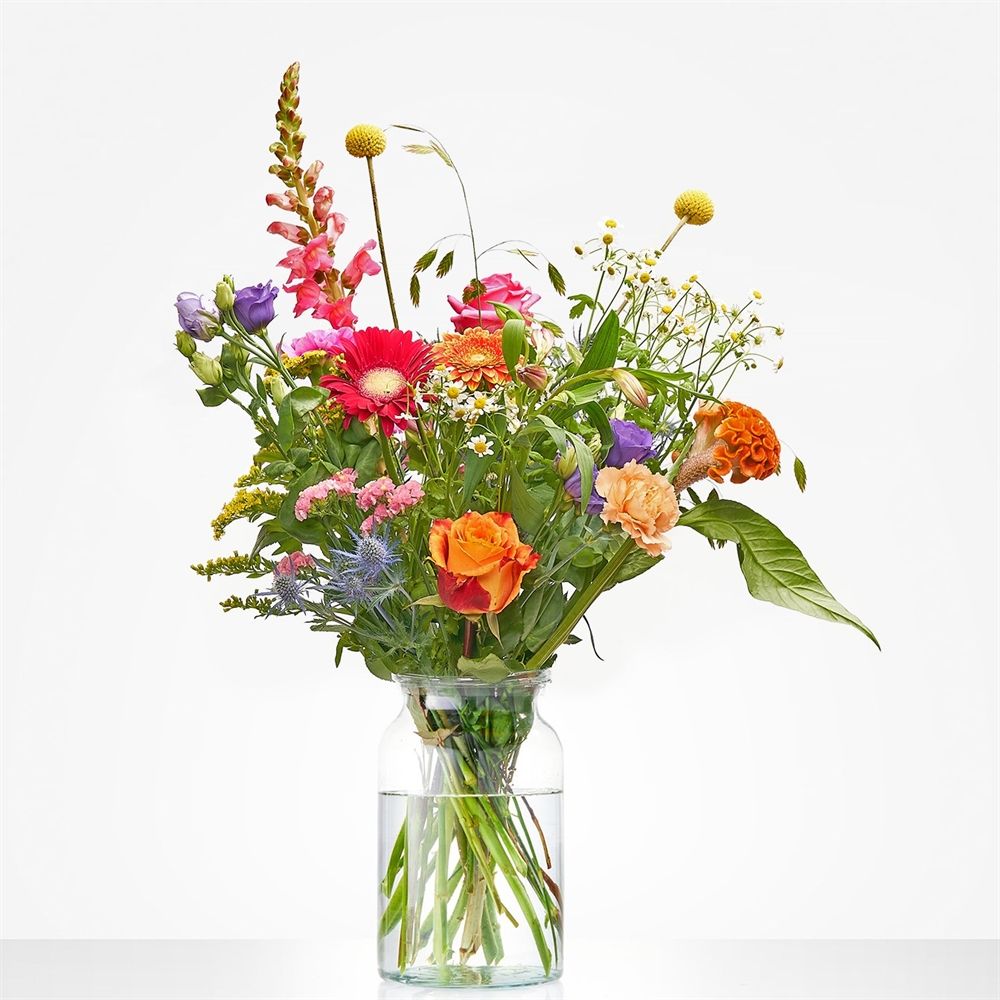 Prachtig, al die verschillende kleuren bloemen geschikt tot één boeket. Wil je iemand feliciteren, opvrolijken of bedanken? Dan is dit boeket het perfecte cadeau. Door de opvallende en kleurrijke bloemen die als plukboeket zijn geschikt, wordt iedereen vr Het geleverde boeket wijkt af van de foto aangezien bloemen natuurproducten zijn.