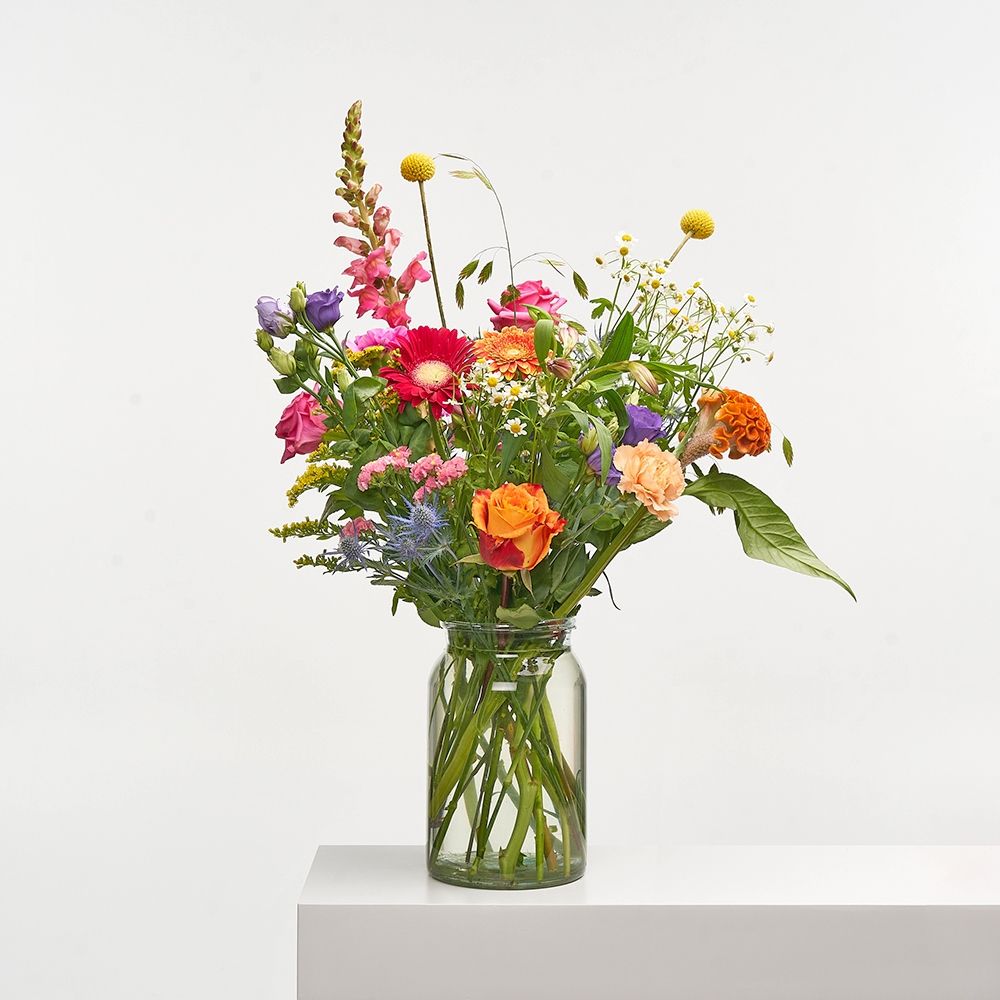 Wauw, dit boeket is echt een plaatje! Wil je iemand feliciteren, opvrolijken of bedanken? Dan is dit boeket het perfecte cadeau. Door de opvallende en kleurrijke bloemen in plukstijl, vrolijkt dit boeket iedereen op. (excl. vaas) Het geleverde boeket wijkt af van de foto aangezien bloemen natuurproducten zijn.