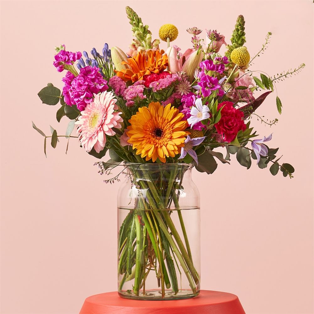 Dit prachtige boeket wordt zorgvuldig samengesteld door de nabije vakbloemist. Een levendig, kleurrijk boeket met de meest prachtige seizoensbloemen. Een gegarandeerde vreugde voor elke ontvanger. Houd er rekening mee dat het uiteindelijke boeket kan afwijken van de afbeelding, aangezien bloemen natuurlijke producten zijn.