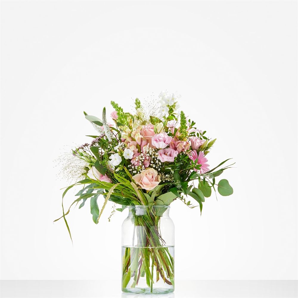 Dit is het losse boeket van de combinatie: Welkom meisje. Voeg zelf een roze Nijntje toe om de bestelling compleet te maken. (excl. vaas) Het geleverde boeket wijkt af van de foto aangezien bloemen natuurproducten zijn.