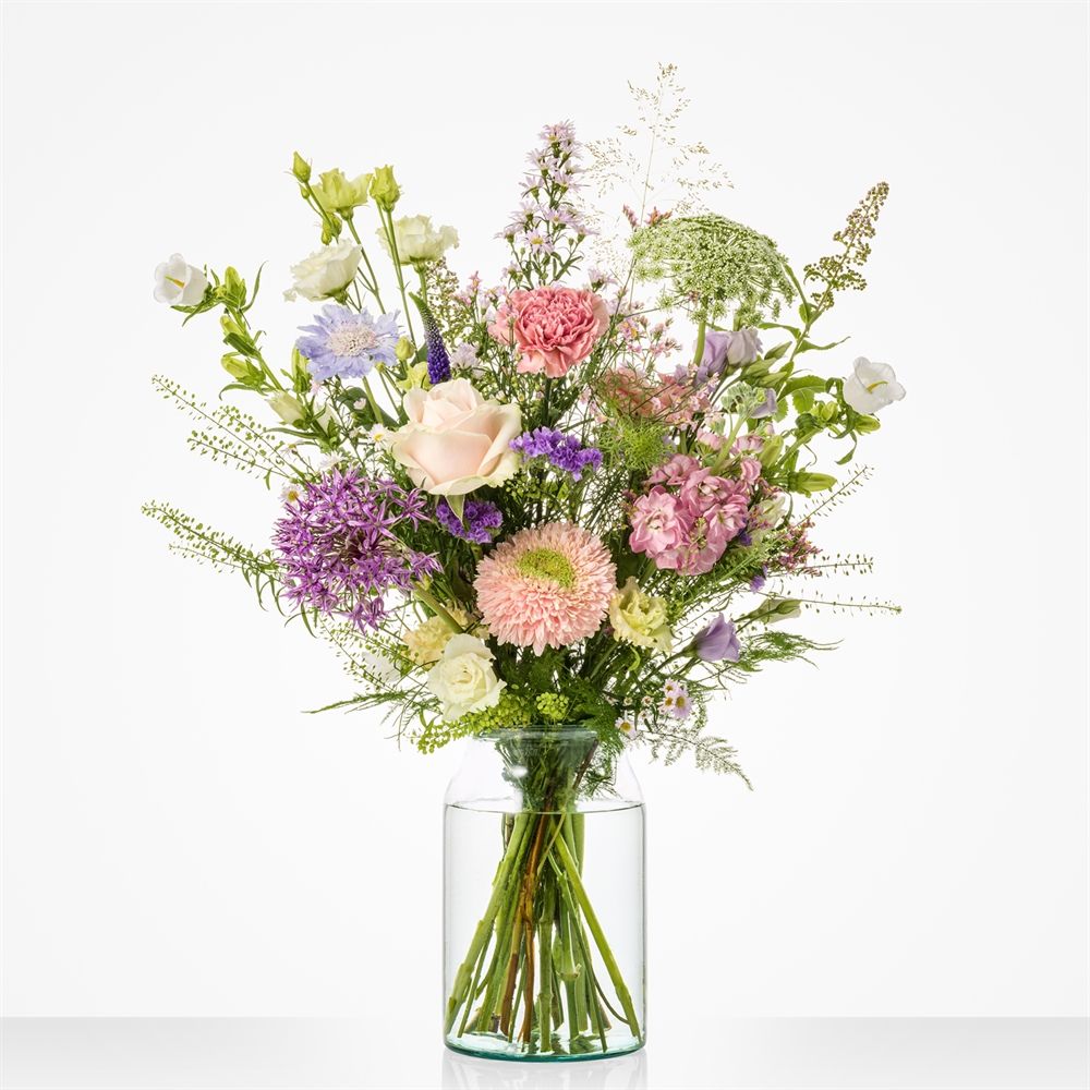 Laat je hart stralen met het subtiele, pastelkleurige boeket vol elegantie. Het perfecte cadeau voor elke gelegenheid, waar stijl en zachtheid samenkomen. Dit prachtige arrangement brengt warmte en sfeer in elk interieur, een ware blikvanger die je met veel plezier geeft en ontvangt. Laat je verrassen door de verfijnde details en luxueuze uitstraling van dit betoverende boeket. Met onze bezorgservice door heel Nederland maak je gegarandeerd iemand gelukkig!