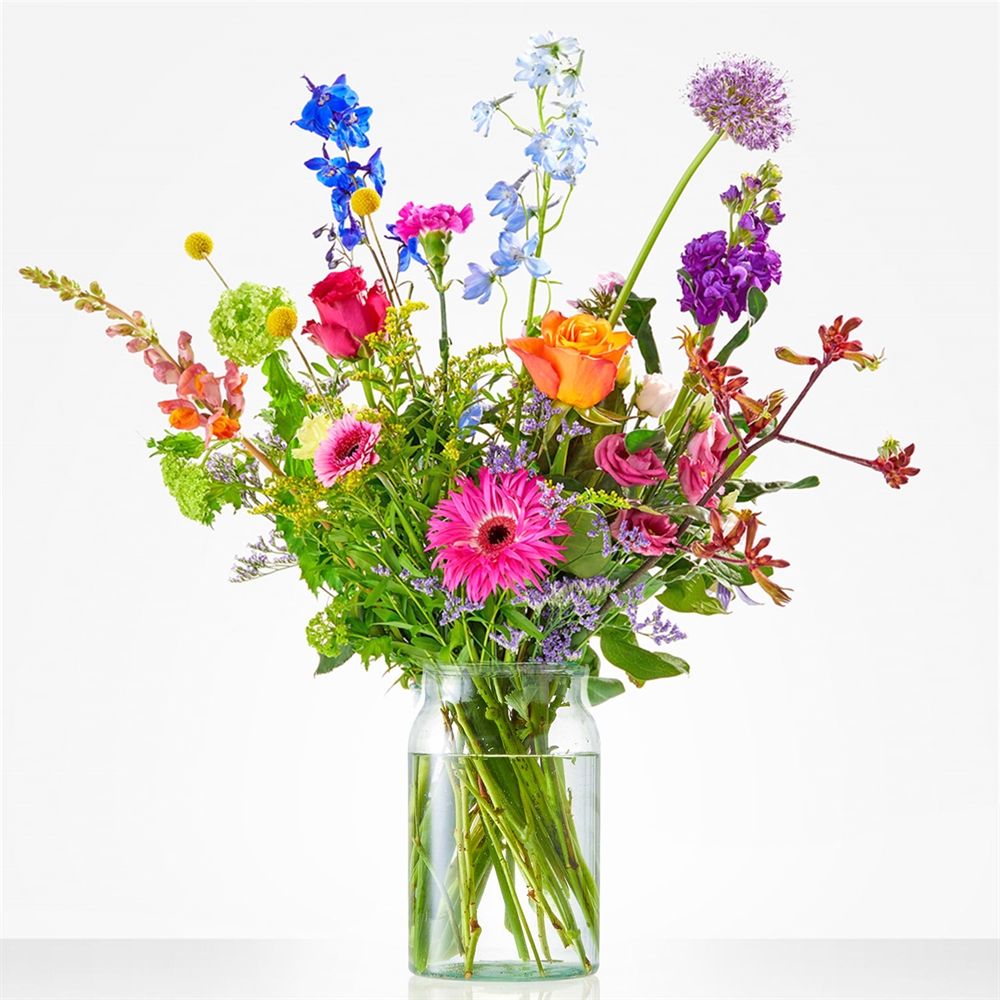 Wat een prestatie, dat verdiend een bloemetje! Met dit boeket feliciteer jij iemand die een mijlpaal of belangrijke prestatie geleverd heeft. Wie verras jij met dit kleurrijke boeket? (excl. vaas) Het geleverde boeket wijkt af van de foto aangezien bloemen natuurproducten zijn.