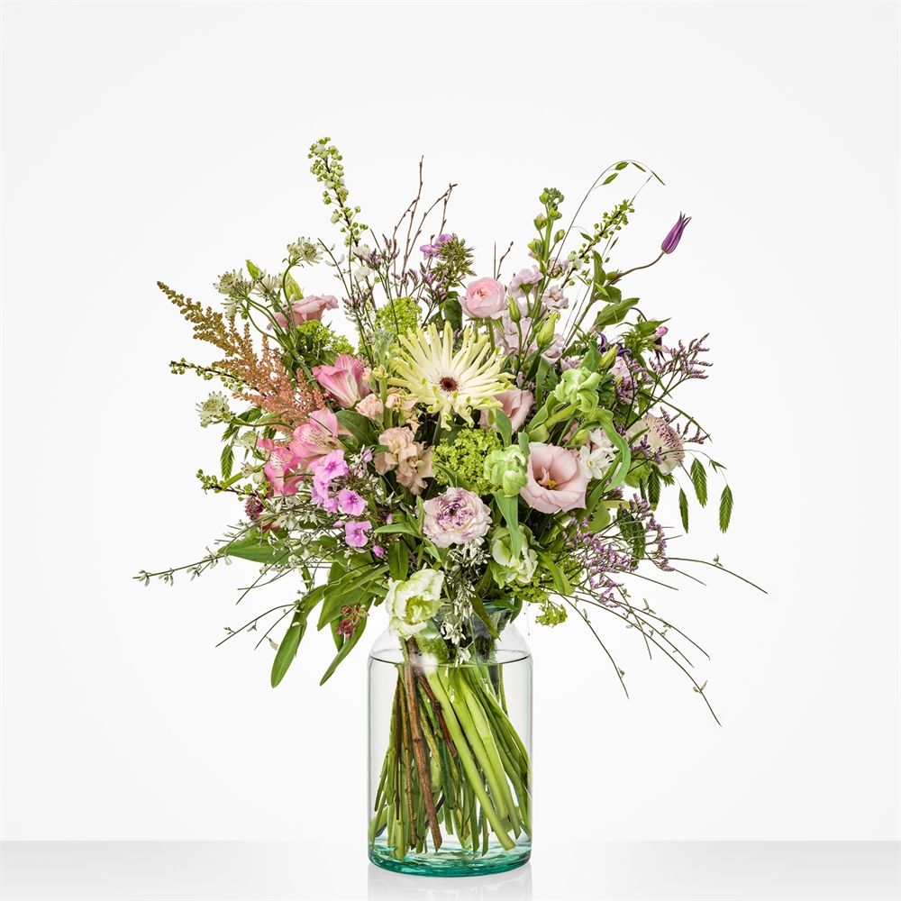 Het adembenemende Boeket Uitzinnig Voorjaar brengt de pracht van het seizoen tot leven. Haal de warme sfeer van de lente in huis met dit luxueuze boeket vol kleurrijke bloemen. Plaats het op elke plek in huis voor een vleugje magie en geef een cadeau waar je hart sneller van gaat kloppen. Laat dit boeket stralen en een glimlach toveren bij elke ontvanger, waar dan ook in Nederland: een geschenk vol liefde en schoonheid.