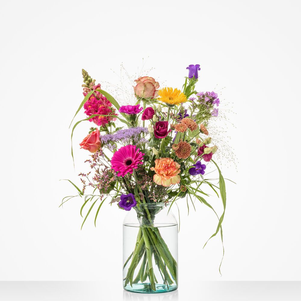 Dit kleurrijke bonte boeket is ideaal als blijk van waardering, een lief gebaar of om iemand te bedanken. Dankzij de levendige kleuren is dit boeket geschikt voor iedere gelegenheid. Een veelzijdig plukboeket waarmee je iedereen verrast. Vergeet niet om een vaas toe te voegen aan je bestelling om de bloemen nog beter tot hun recht te laten komen. Wil je je geschenk extra speciaal maken? Probeer dan zeker onze bonbons en chocolade. Houd er rekening mee dat het geleverde boeket kan afwijken van de foto, aangezien bloemen natuurproducten zijn.