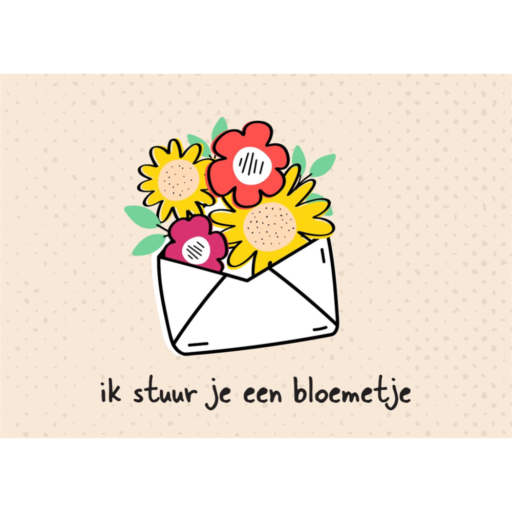 Wenskaart met een envelopje met bloemen