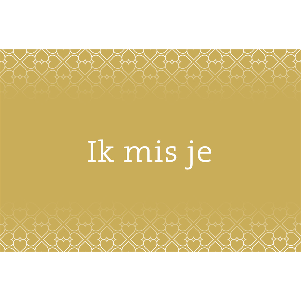 Iemand missen is nooit leuk, maar laat vooral weten dat je aan hem of haar denkt met een mooi boeket en deze wenskaart met tekst: Ik mis je.
