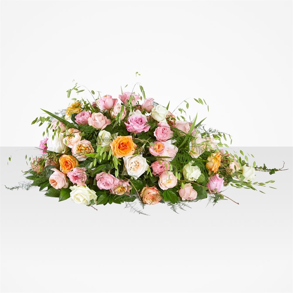Laat je liefde en steun spreken met het prachtige droevige bloemstuk "Bijzonder gemis". Dit romantische, klassieke meesterwerk straalt in pastelkleuren en is samengesteld van de meest verfijnde materialen en bloemen. Verras je geliefde met dit elegante bloemstuk dat troost en warmte biedt in tijden van verdriet en gemis. De zachte tinten en bloemen van dit rouwstuk omarmen de ontvanger met liefde en koesterende gedachten. Laat je emoties bloeien en verstuur dit prachtige boeket door heel Nederland om je nabijheid te tonen en te troosten.