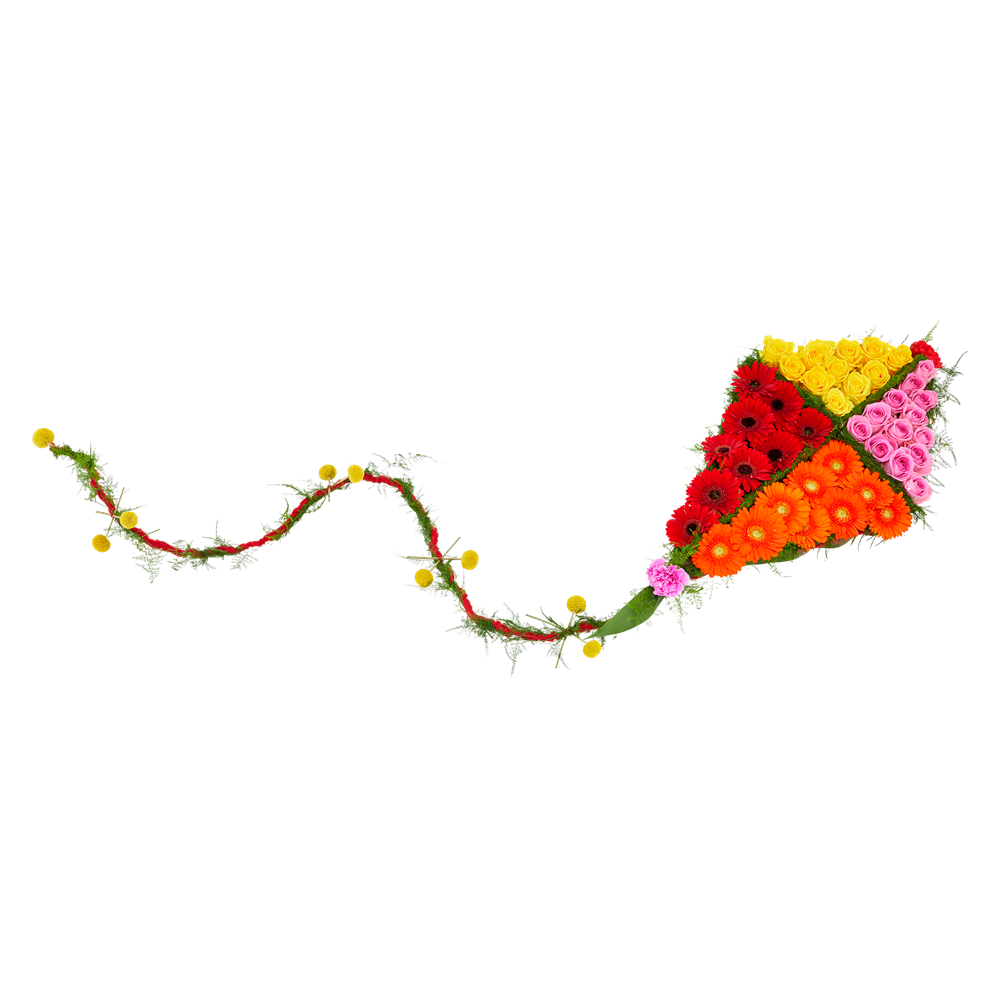 Het rouwstuk Boven de wolken is een bloemstuk in de vorm van een vlieger. Boven de wolken maakt deel uit van het thema 'Onze sterren' binnen het rouwwerk van Fleurop. Onze sterren verdienen het om gezien te worden en voor altijd te blijven stralen. In dit thema vind je speciale vormen die betekenisvol kunnen zijn. De speciale vliegervorm van Boven de wolken bevat kleurrijke bloemen en heeft een formaat van ongeveer 25cm bij 60cm. Fijn om te weten: iedere bestelling met rouwwerk wordt door onze klantenservice medewerkers persoonlijk en handmatig gecontroleerd. Hiermee garanderen wij dat het rouwstuk volledig naar wens wordt samengesteld. Onze bloemisten bezorgen de rouwbloemen op een locatie naar keuze (bij een kerk, rouwcentrum of crematorium). Je hoeft het rouwstuk niet zelf op te halen bij de bloemist. Onze bloemisten zorgen ervoor dat het rouwboeket op het juiste moment wordt bezorgd en dat de bloemen op hun mooist zijn. Een extra fijne gedachte in een verdrietige periode.