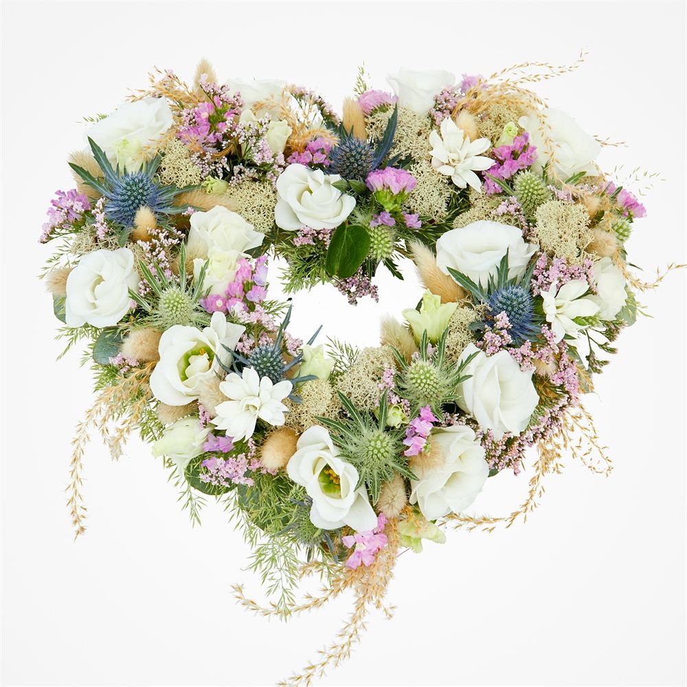 Ontdek onze betoverende collectie rouwstukken, waaronder het stijlvolle rouwboeket Eeuwig hart. Het hartvormige arrangement brengt troost met zijn natuurlijke bloemen, elegante grassen en unieke droogmaterialen. Dit frivole en uniek samengestelde rouwstuk straalt rust en warmte uit. Geef een emotioneel cadeau met onze elegante bloemencreaties, perfect voor een bijzonder afscheid. Laat liefdevol bezorgen door heel Nederland.
