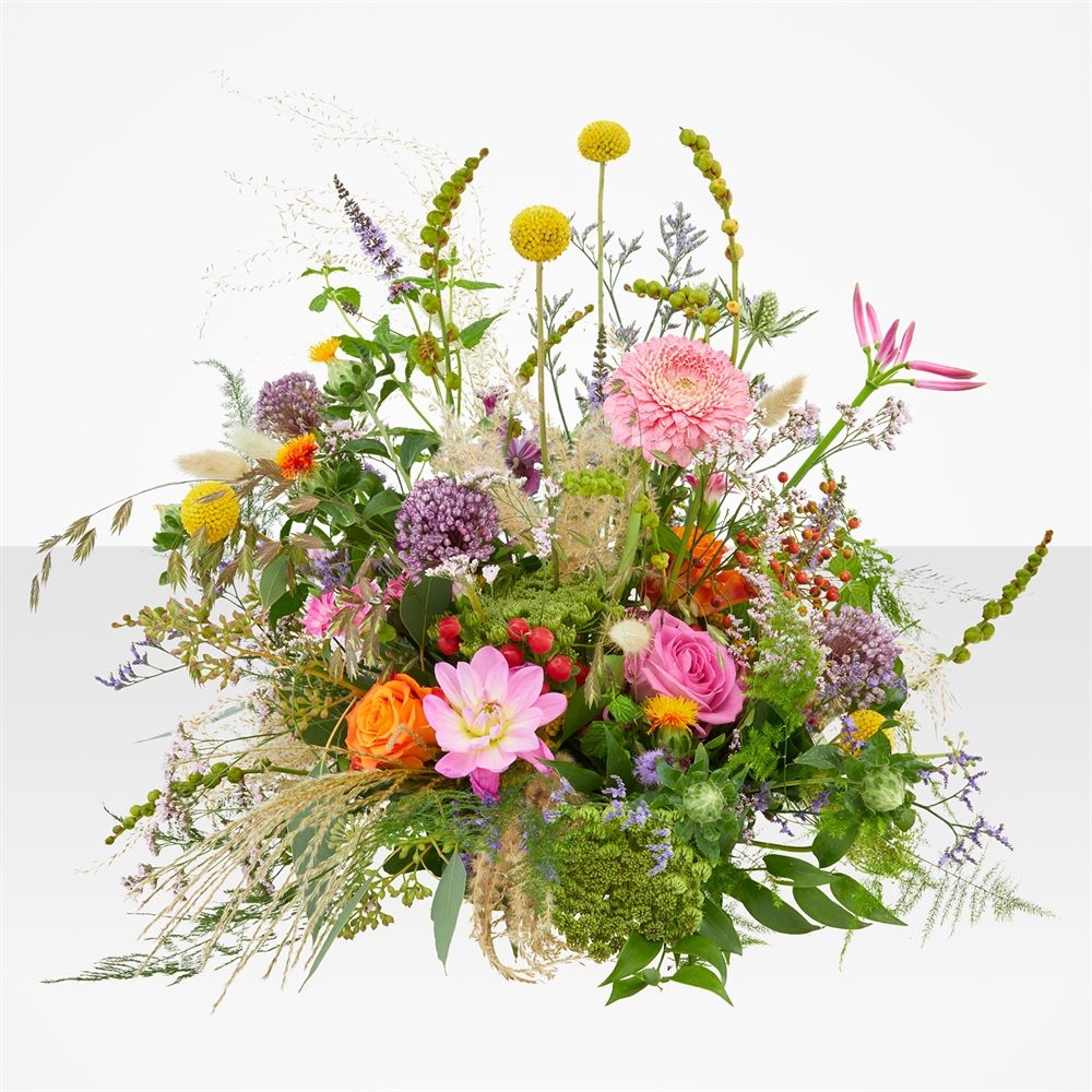 Laat je emoties spreken met ons prachtige rouwboeket 'Natuurlijk geplukt'. Een stijlvol biedermeier rouwstuk in zachte pasteltinten, met natuurlijke bloemen, bijzondere grassen en droogmaterialen. Een eerbetoon van schoonheid en troost, perfect voor een memorabel afscheid. Geef dit unieke boeket als betekenisvol cadeau en laat liefde bloeien, waar dan ook in Nederland.