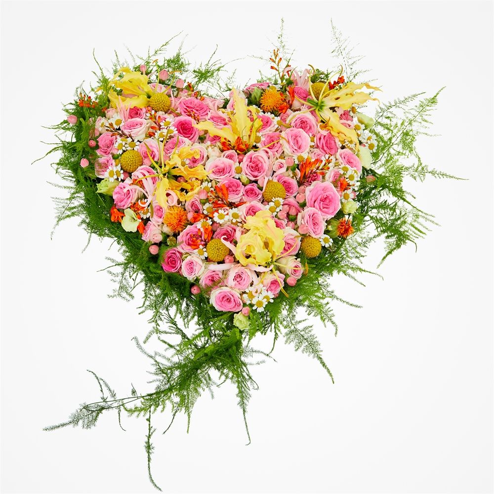 Een prachtig bloemstuk vol liefde en kleuren, ons rouwstuk 'Rozengeur'. Met unieke rozen en een warme uitstraling, perfect voor een respectvol eerbetoon. Geef dit hartvormige rouwstuk als eerbetoon vol warmte en genegenheid. Bestel en laat heel Nederland zich de warmte van deze bloemen verspreiden.