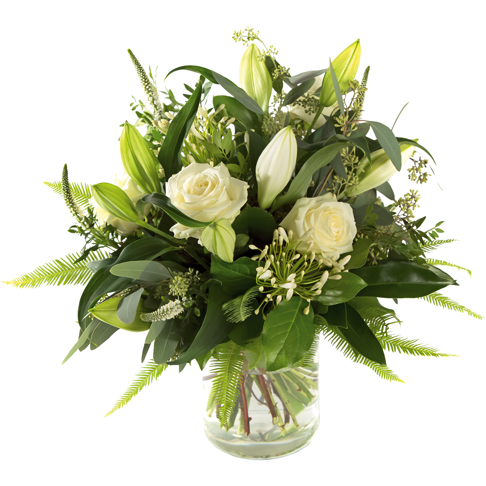 Lelie in combinatie met andere bloemen vormen een prachtig boeket dat u bij nabestaanden kunt laten bezorgen om hen sterkte te wensen. Excl. vaas en lint.