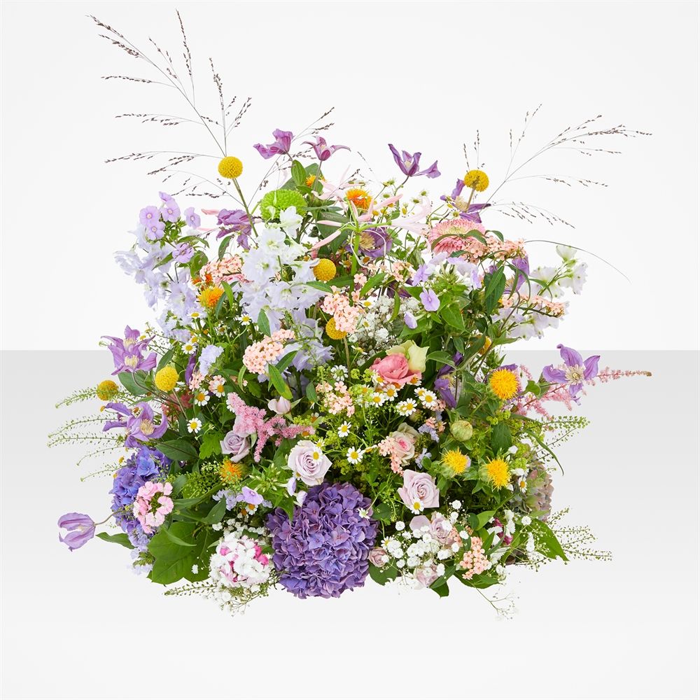 Laat je liefde bloeien met ons Veldmist boeket - een modern en kleurrijk meesterwerk van de mooiste seizoensbloemen. Perfect als cadeau voor elke gelegenheid. Beleef de schoonheid en warmte van bloemen geleverd door heel Nederland.