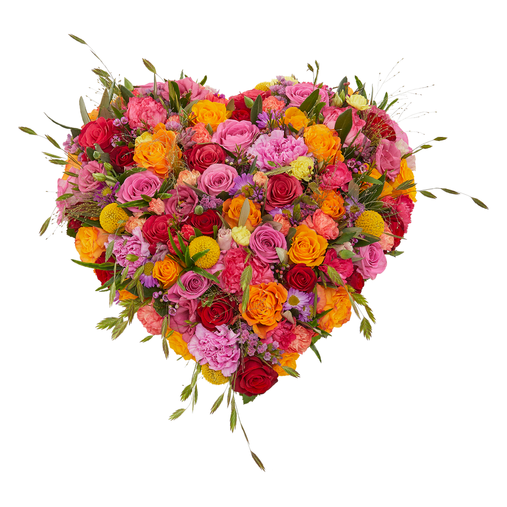 Het kleurrijke rouwstuk Warm Hart in de vorm van een hart straalt liefde uit. Dit romantische bloemstuk is samengesteld met zorgvuldig geselecteerde bloemen. Het hartvormige rouwstuk bevat prachtige rozen in warme en roze tinten, verkrijgbaar in 35cm, 45cm of 60cm. Bij elke bestelling van rouwbloemen wordt persoonlijk gecontroleerd door onze klantenservice om ervoor te zorgen dat het rouwstuk volledig aan jouw wensen voldoet. Onze toegewijde bloemisten zorgen voor de bezorging op de gewenste locatie, of het nu een kerk, rouwcentrum of crematorium is. Het rouwstuk wordt bezorgd op het juiste moment, zodat de bloemen prachtig tot hun recht komen. Een geruststellende gedachte in moeilijke tijden.
