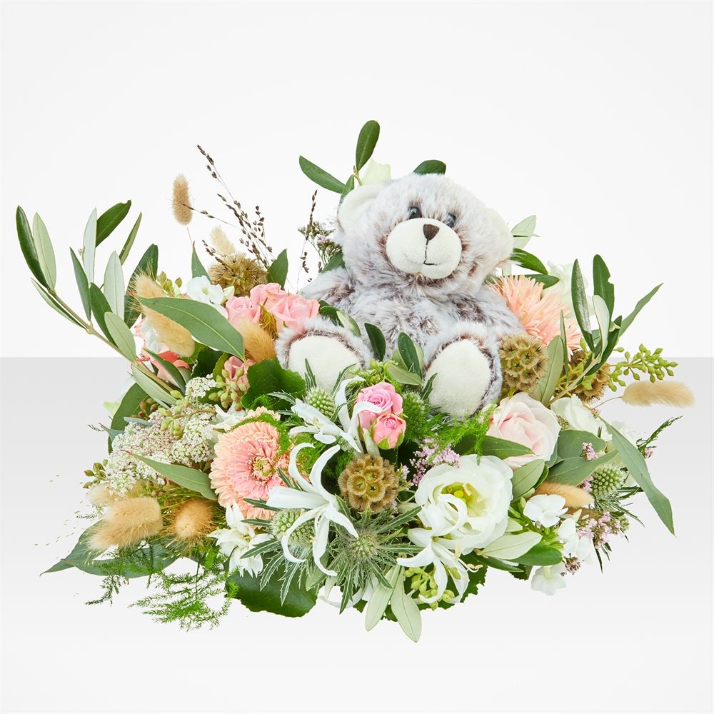 Ontdek onze prachtige Zachte knuffel boeketten, perfect voor het verrassen van geliefden. Een unieke combinatie van bloemen en knuffels, verkrijgbaar in verschillende maten. Laat je emoties spreken en geef een bijzonder cadeau van liefde en troost. Deze bijzondere creaties behoren tot het 'Onze sterren' thema van ons assortiment rouwbloemen.