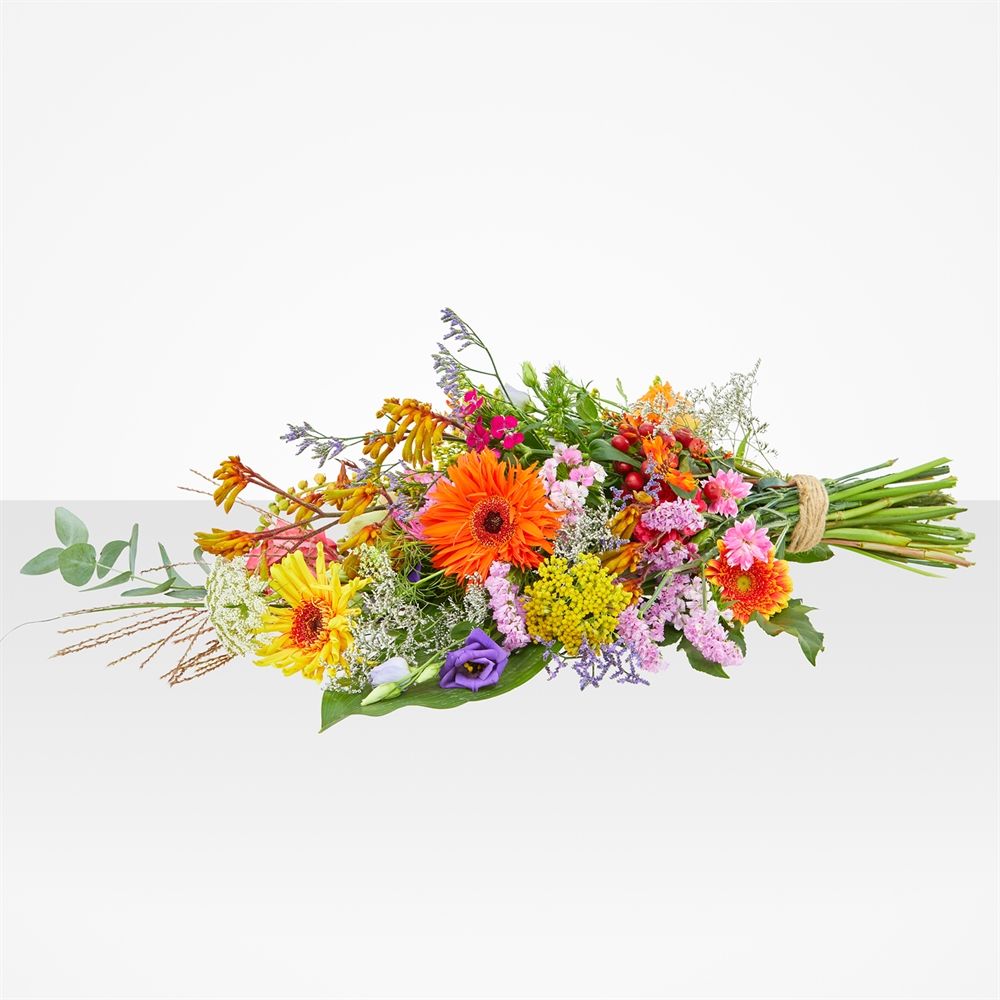 Laat je liefdevolle steun stralen met ons Zonnestraal rouwboeket. Een uniek eerbetoon met krachtige en kleurrijke bloemen voor een warm afscheid. Verras met stijl en emotie. Geniet zelf van de exclusieve vaas. Bezorging in heel Nederland.